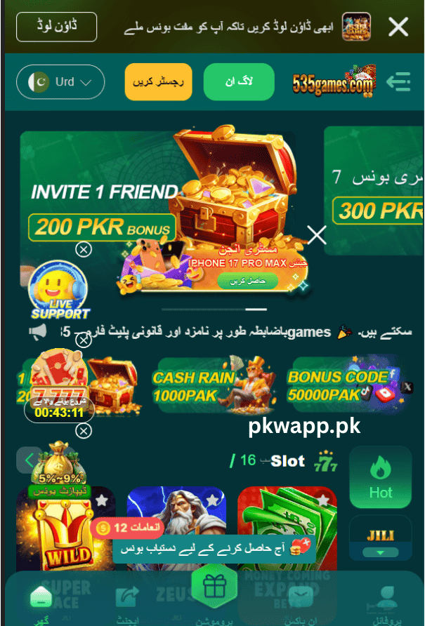 535 Games brings you slot games, daily bonuses, free spins, and genuine cash withdrawals all in one place. It works smoothly on mobile and supports local payment methods like Easypaisa and JazzCash.